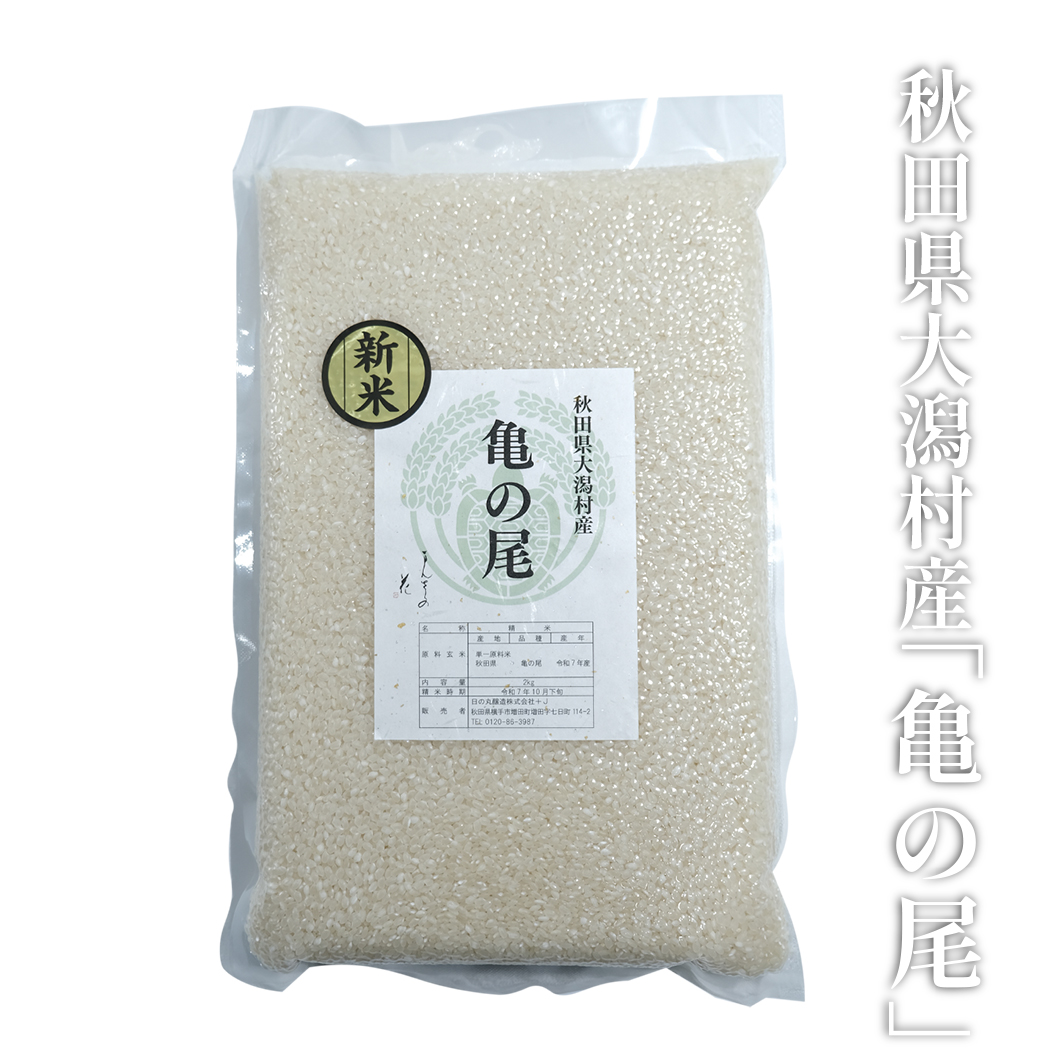 人気米「亀の尾」の新米をお届けいたします! 人気米「亀の尾」を食べてみたいというご要望にお応えし、酒蔵ならではの特別な商品をご用意いたしました。令和7年度産の亀の尾を真空パックにしてお届けいたします。秋田県大潟村産の亀の尾は非常に品質が良く、本年度、当社の全国新酒鑑評会出品酒にも使用する予定です。亀の尾の美味しさを存分にご堪能いただけること、間違いありません。 普段はなかなかお目にかかれない、希少な亀の尾米。 粒が大きく、あっさりとした味わいのお米です。 お水の量はいつもより少な目にするとおいしく炊き上がります。 【真空パックの漏れについて】 出荷時に検品を行い、梱包にも注意して発送しておりますが、輸送中の衝撃等により、真空漏れ(真空パックの中に空気が入り、真空状態が解かれてしまう現象)を起こす場合がございます。 真空漏れを完全に防ぐことは難しく、袋の破れがある場合を除き、真空漏れの場合の返品や交換につきましては、ご容赦いただきますようお願い申し上げます。 包装・熨斗について この商品は包装不可となっております。 配送用段ボールで梱包してお届けいたします。 商品情報 大潟村産亀の尾米 内容量:2kg 精米時期:2025年10月下旬 ※真空包装
